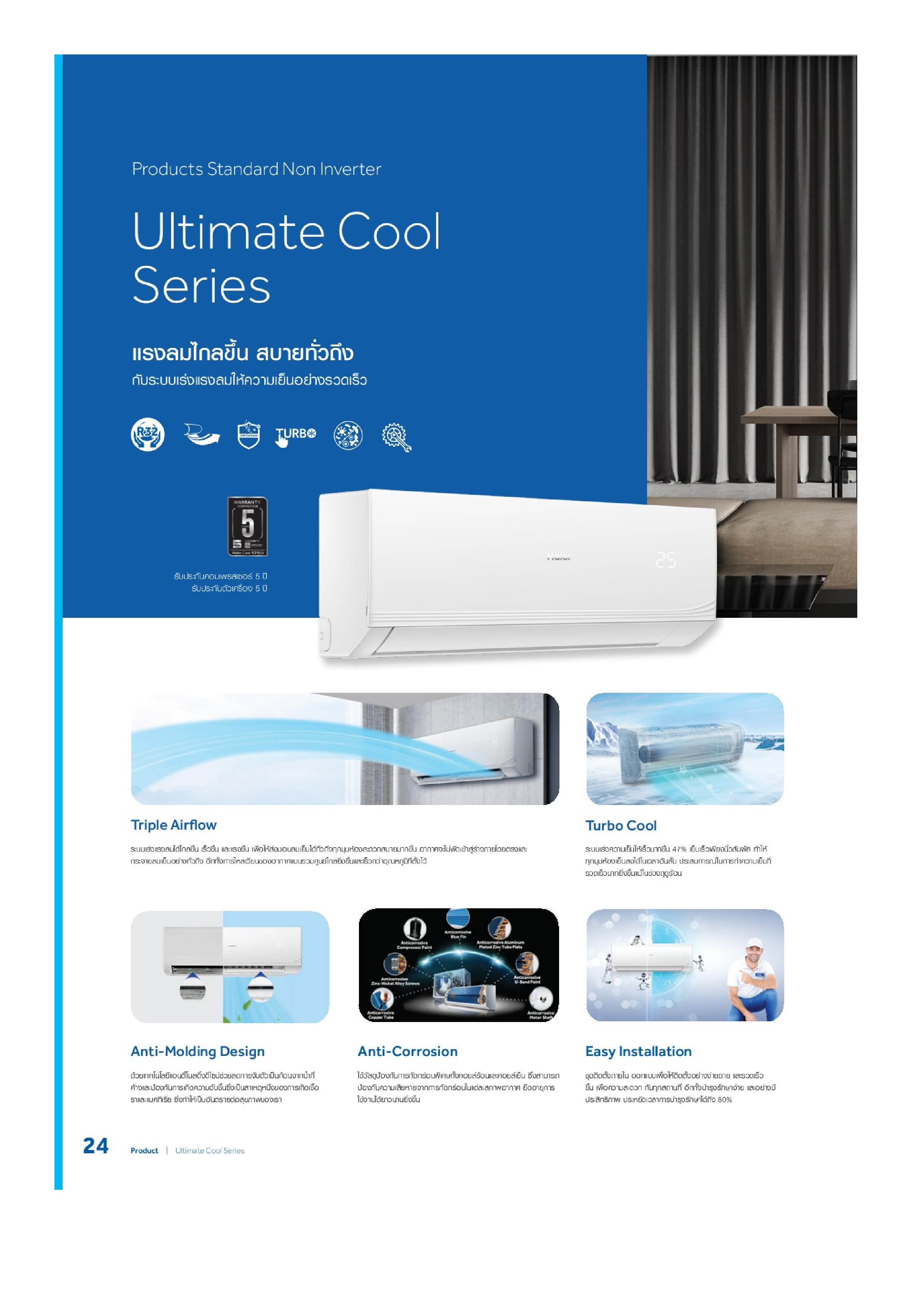 - > รับประกันคอมเพรสเซอร์ 5 ปี อะไหล่ 5 ปี