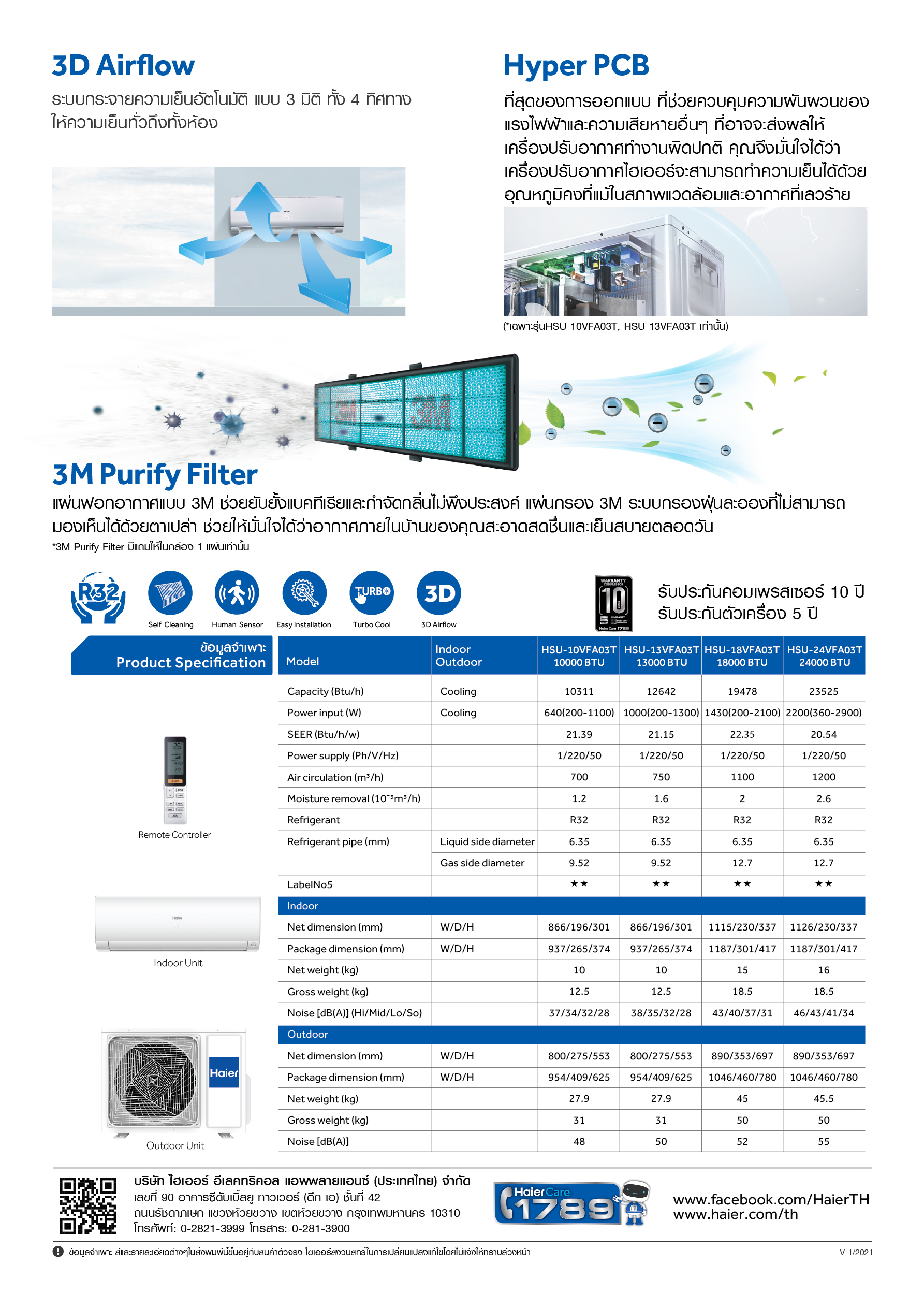 แอร์ HAIER รุ่น VFA Series ระบบ อินเวอร์เตอร์ น้ำยา R32 คอยล์ทองแดง 100%