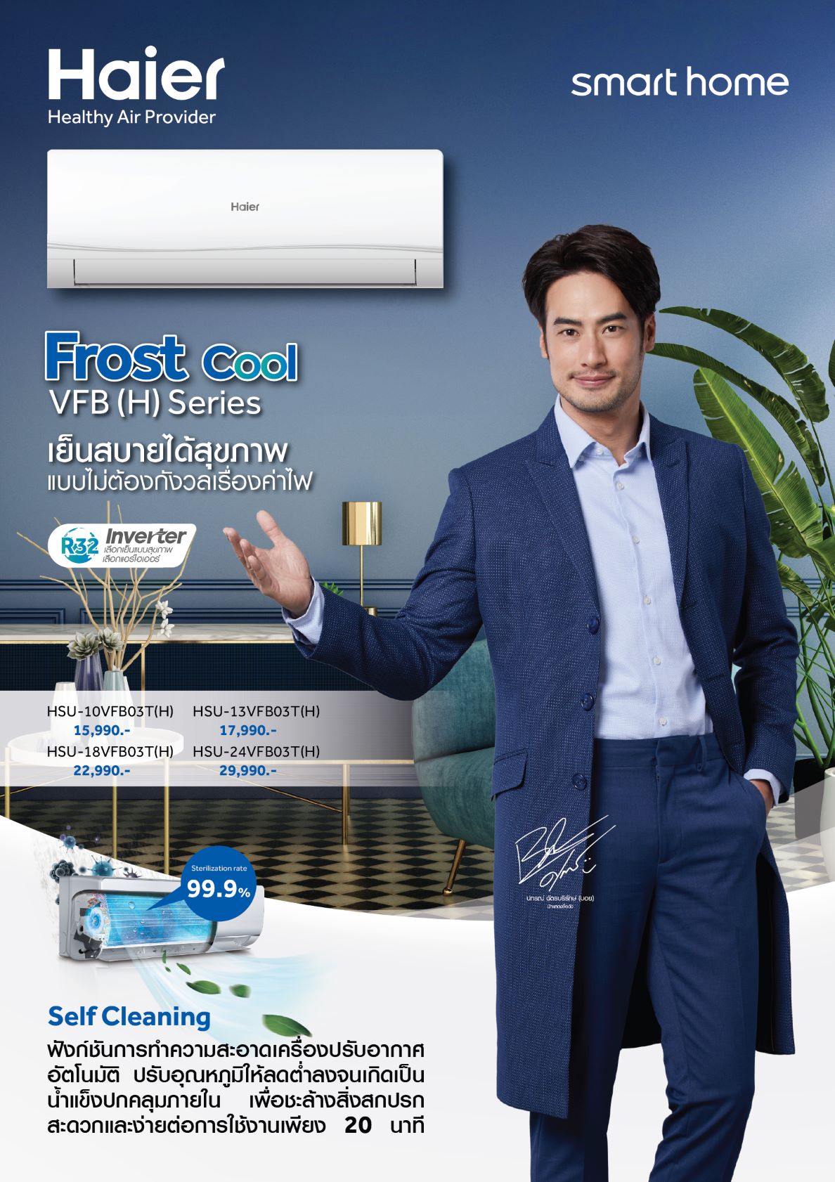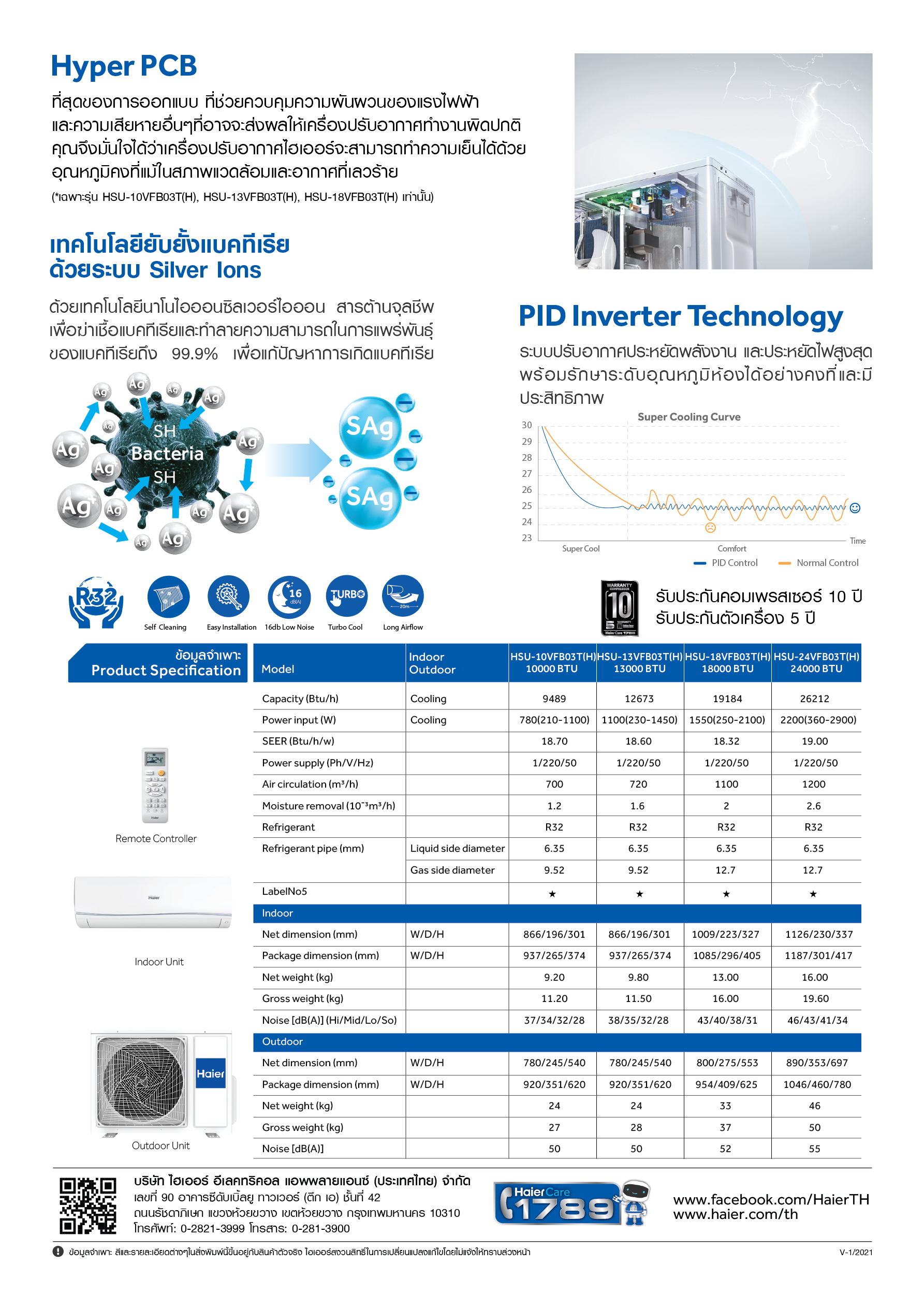 แอร์ HAIER รุ่น VFB (H) ระบบ อินเวอร์เตอร์ น้ำยา R32 คอยล์ทองแดง 100% ทั้งระบบ