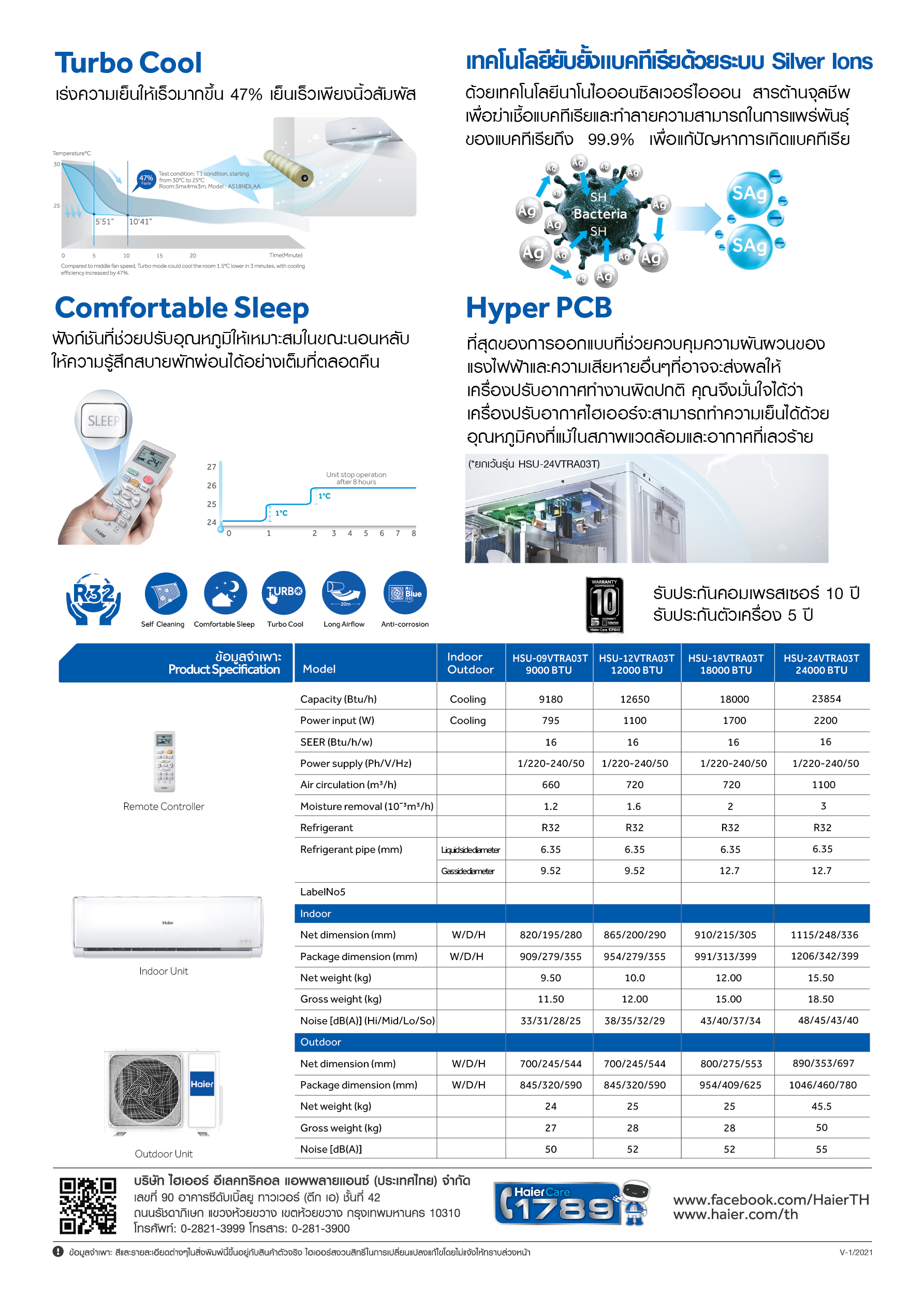 | Model | HSU-09VTRA03T | HSU-12VTRA03T | HSU-15VTRA03T | HSU-18VTRA03T | HSU-24VTRA03T |
