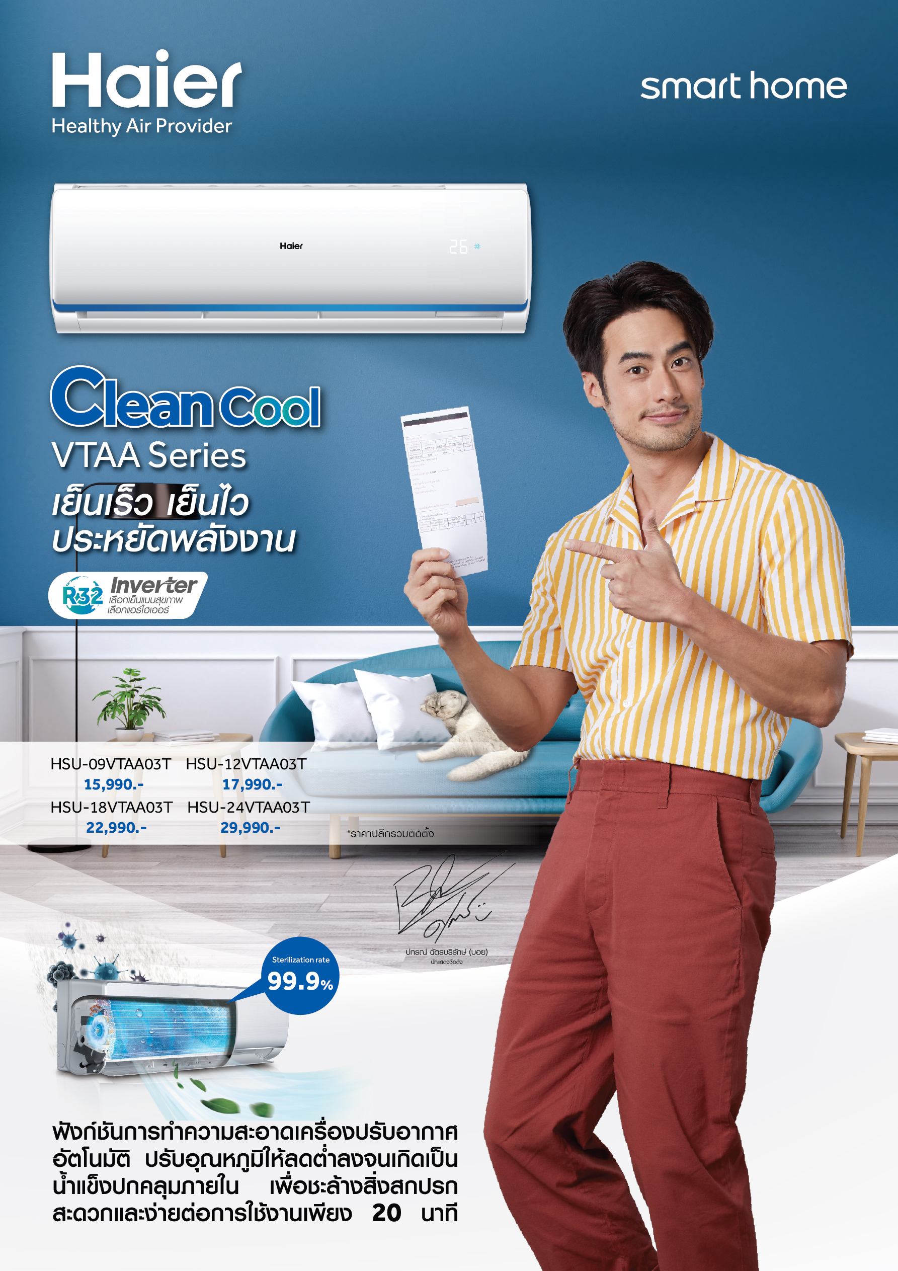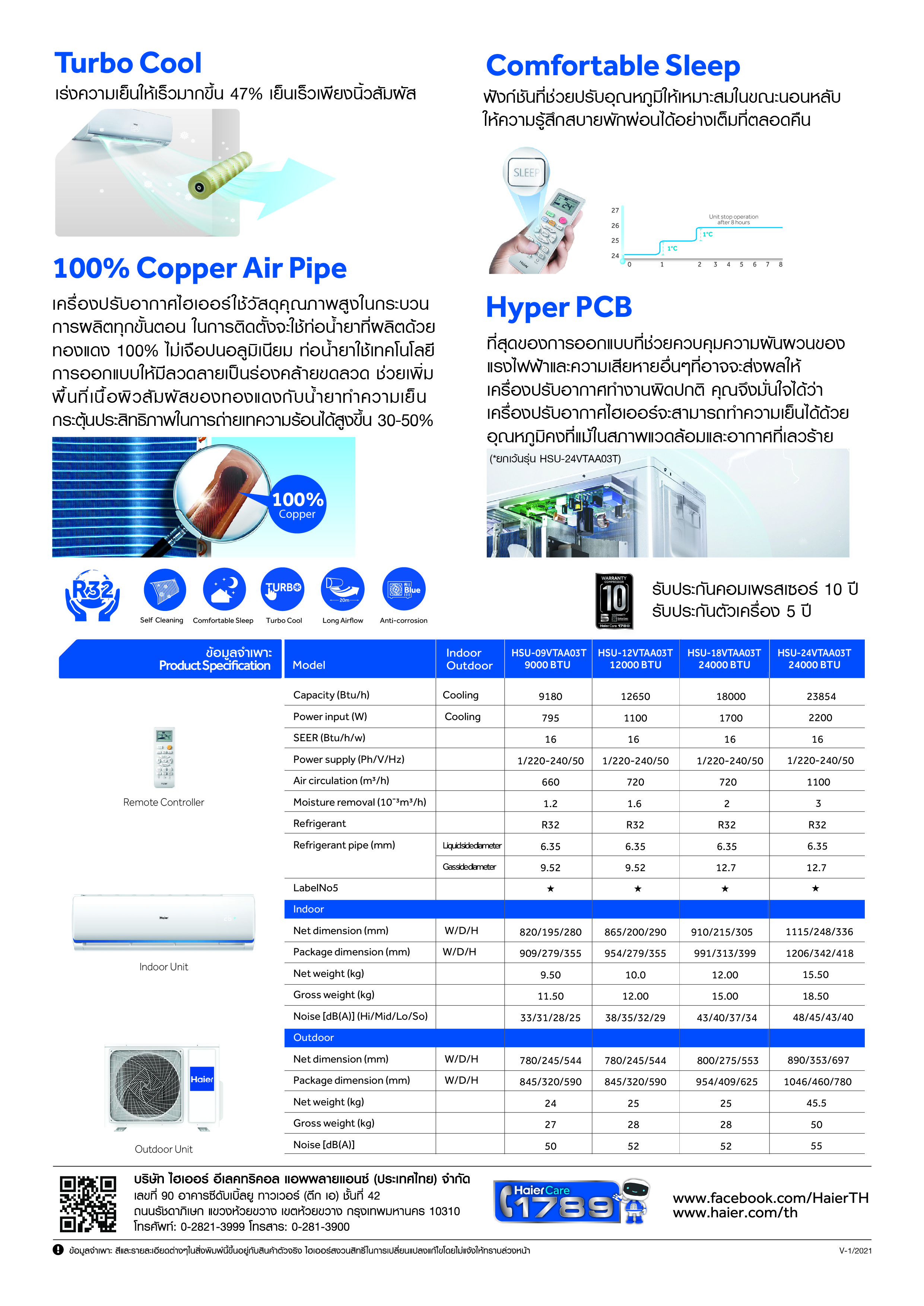 แอร์ HAIER รุ่น VTAA Series ระบบ อินเวอร์เตอร์ น้ำยา R32 คอยล์ทองแดง